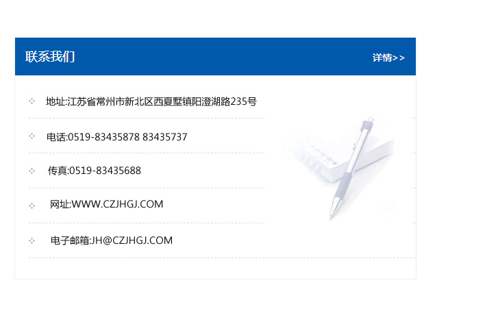 地址:常州市新北區友邦商務大廈1幢16、17層  電話:0519-85101652  傳真:0519-85112595  郵編:213022  網址:hysun-g_cn.zzfchina.com  郵箱:xiajifengaa@163.com